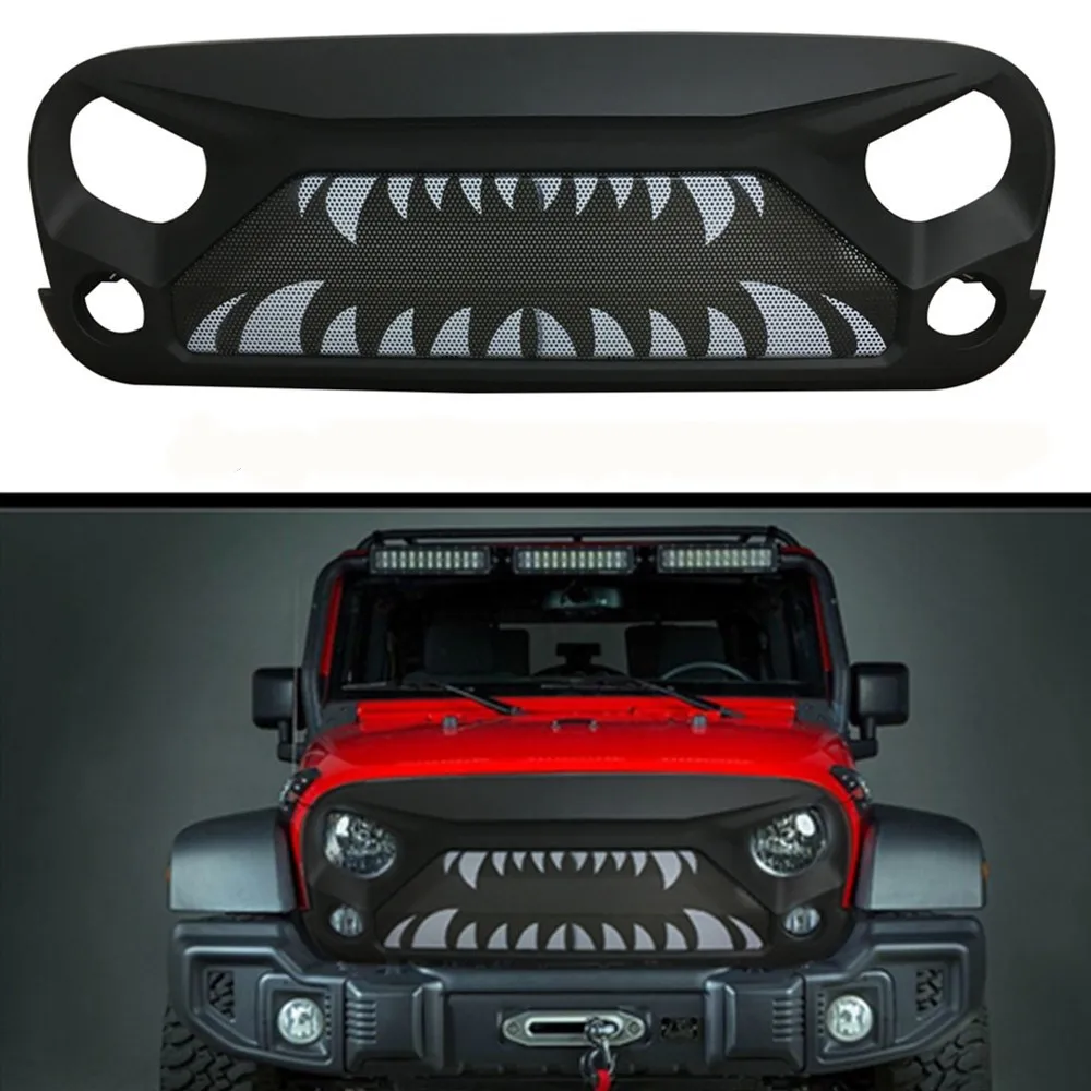 Front Shark Style Grille For 2007 2018 Jeep Wrangler Jk Jku