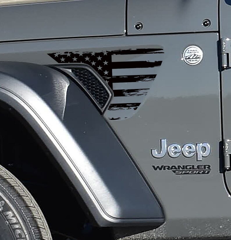 Distressed American Flag 2pc Fender Vent Blackout Decals For 2018 Jeep Wrangler Jl Jlu Jt