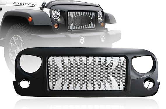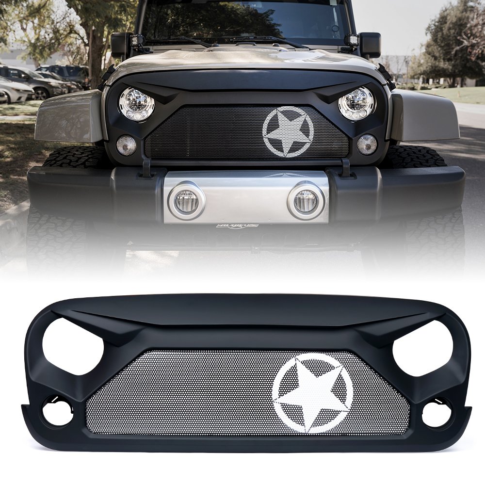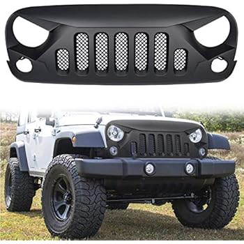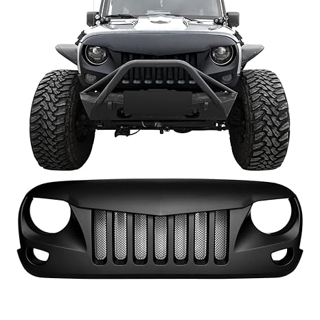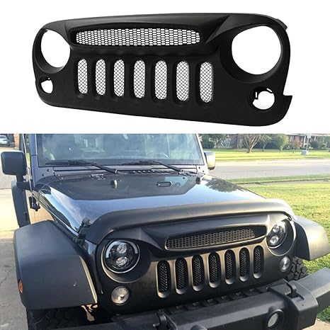 Allinoneparts Front Matte Black Eagle Eyes Grille W Mesh Insert For Jeep Wrangler Rubicon Sahara Sport Jk Jku 2007 2018