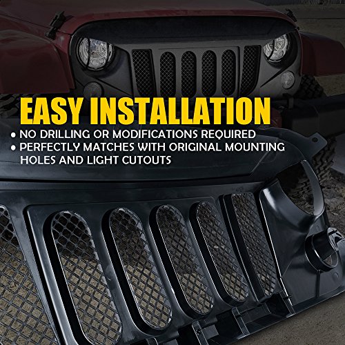 Diytuning Front Matte Black Eagle Eye Grille Grid Grill With Mesh Insert For 2007 2017 Jeep Wrangler Rubicon Sahara Sport Jkjk