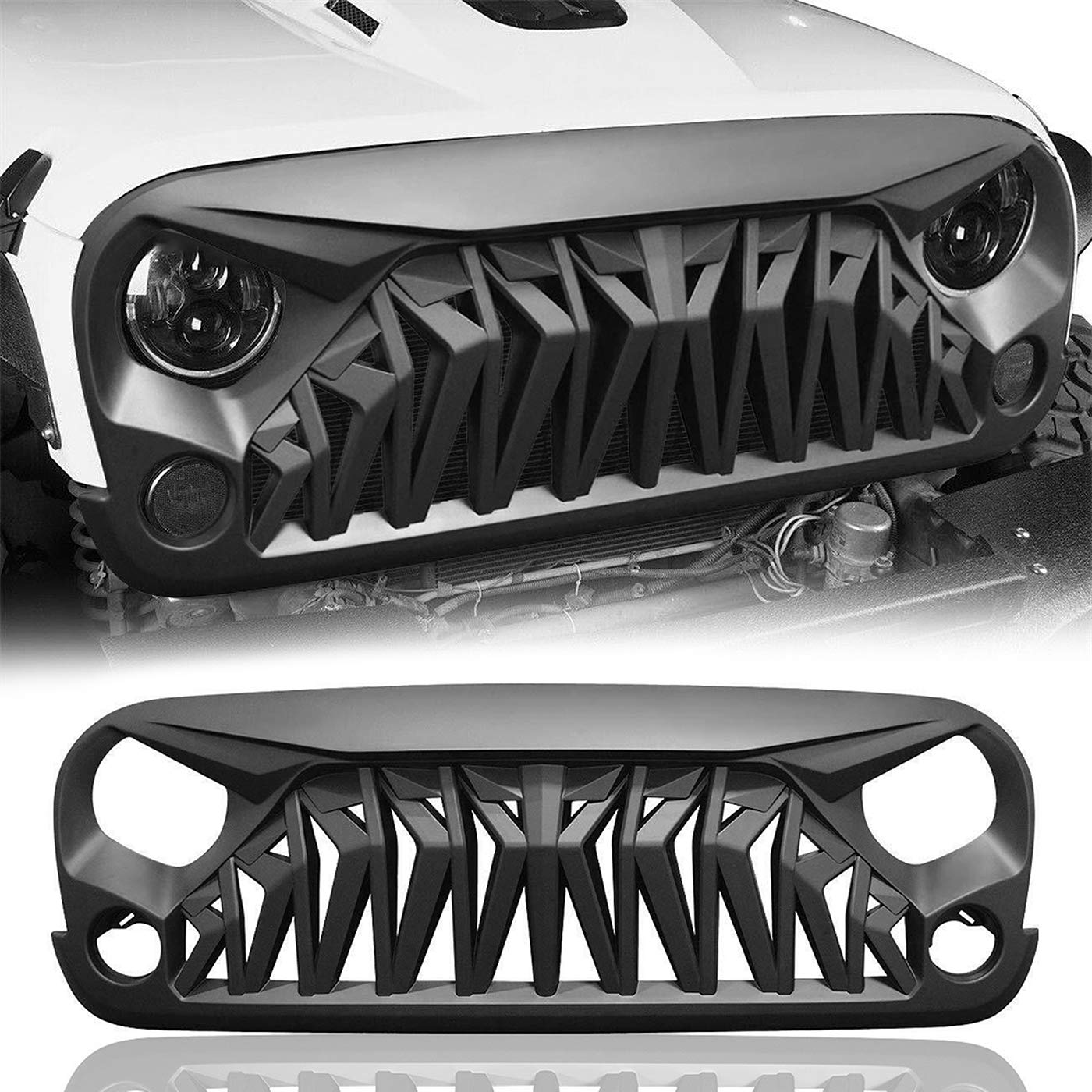 Shark Grille Matt Black Abs Unlimited Rubicon For 2007 2018 Jeep Wrangler Jk Jku