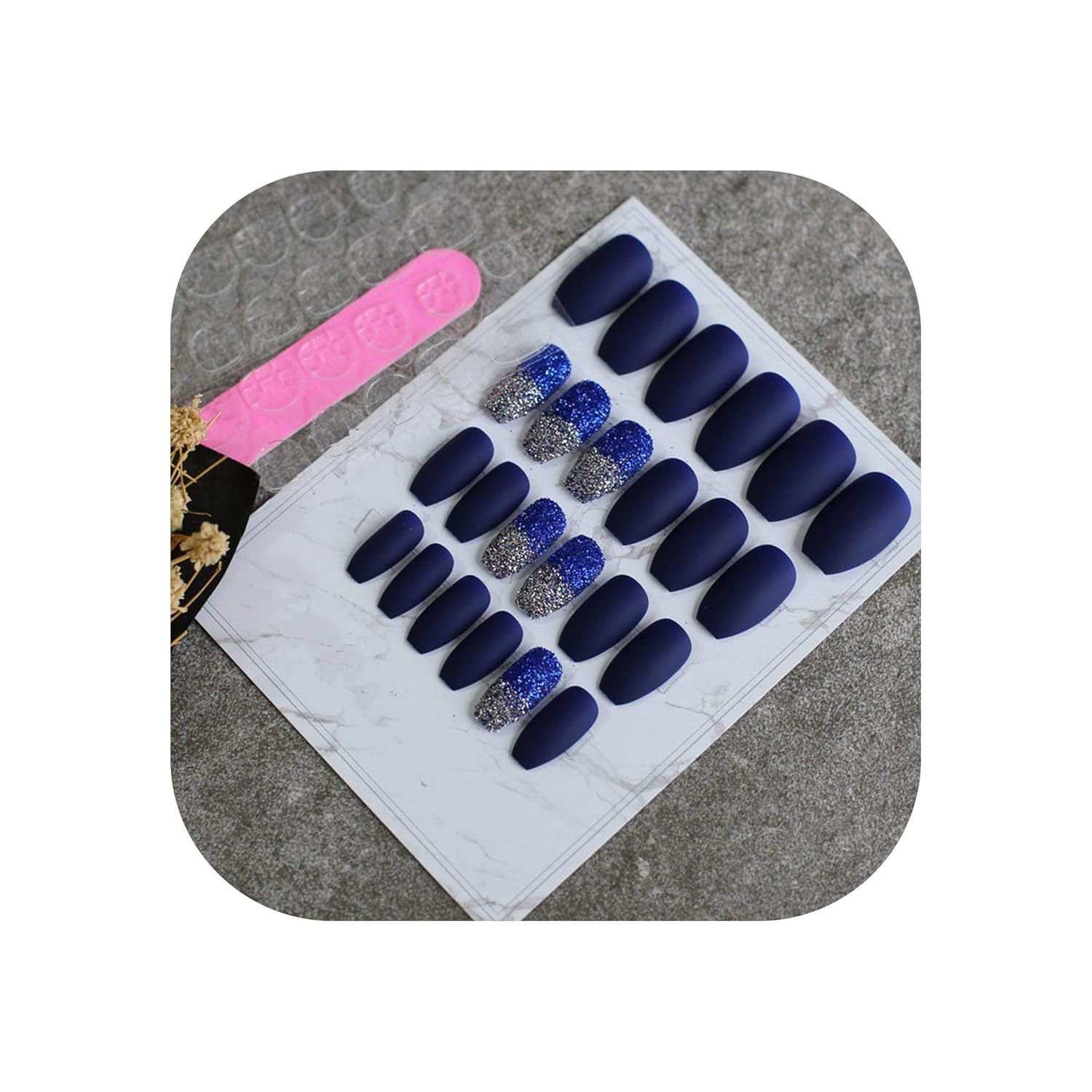 Amazon Com Burgundy Glitter Fake Nails Coffin Blue Full